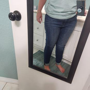A comfortable mid-rise that sits at the natural waist for flattering coverage and a slim, cuffed leg that works with boots or sneakers.